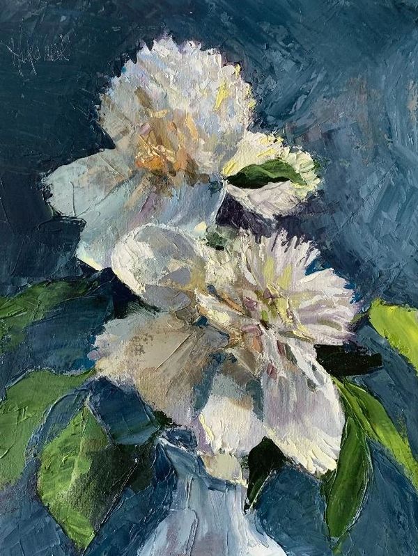 This large new work in oils on canvas was executed with palette knives on a 4' x 5' canvas. It captures a rainy evening we spent in Bordeaux in 2021.